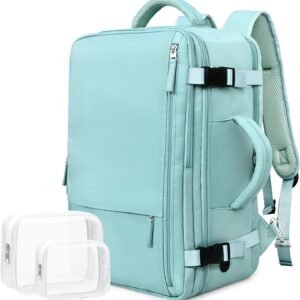 【Large Capacity and Multi Pockets】Carry on backpack with large storage capacity and two extra toiletry bags. Multiple zippered pockets give you plenty of storage space, including a front pocket, waterproof section, main compartment, separate laptop compartment, and anti-theft pocket on the back. In addition, this traveling backpack also has a mesh slip-in pocket with elastic closure on the left side for a bottle or an umbrella