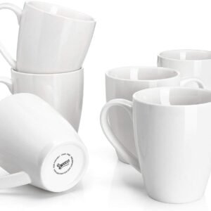 Elegant and Modern Design: Add a touch of elegance to your kitchen or office with simple yet sophisticated white porcelain mugs. The modern design complements any décor, while the large, ergonomic handle provides a comfortable grip. Perfect for coffee lovers and tea enthusiasts alike, these mugs promise to enhance your drinking experience with both beauty and functionality.