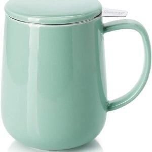 20 OZ Porcelain Tea Mug with Infuser and Lid, Loose Leaf Tea Cup, Gifts for Tea Lover - Mint Green