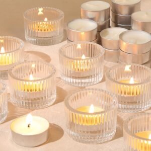 36 Pack Votive Candle Holders Bulk, Clear Tealight Candle Holder for Table Centerpiece, Ribbed Votive Holders for Wedding, Home Decor