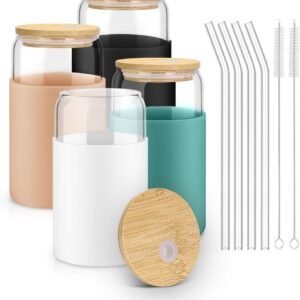 Value set: This set includes 4 cups with lids, 4 straws, 4 silicone sleeve and 2 straw-cleaning brushes. There is no more accessories you need to buy for this set. The 16 oz glass cups is super clear, looks like crystal, providing a versatile and convenient option for any drink.