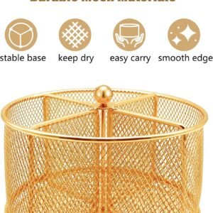 360° Rotating & Always Stand Up: Well made of all gold metal mesh and stainless steel drain holes provide enough breathing space for the silverware caddy. The silverware holder for countertop with 360-degree rotation makes the metal caddy easier to use. In addition, the small utensil organizer got a weighted base so won't tip over easily.
