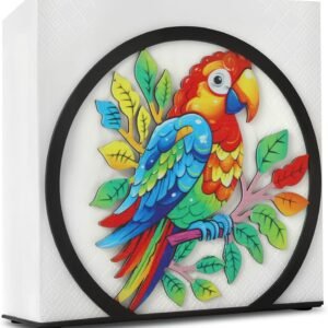 Exquisite pattern:Colorful Parrot Design Cute Fun Napkin Holder,Ultraviolet inkjet printing technology,UV inkjet printing makes patterns more exquisite and vivid, with rich colors, wear resistance and long-term use without fading.