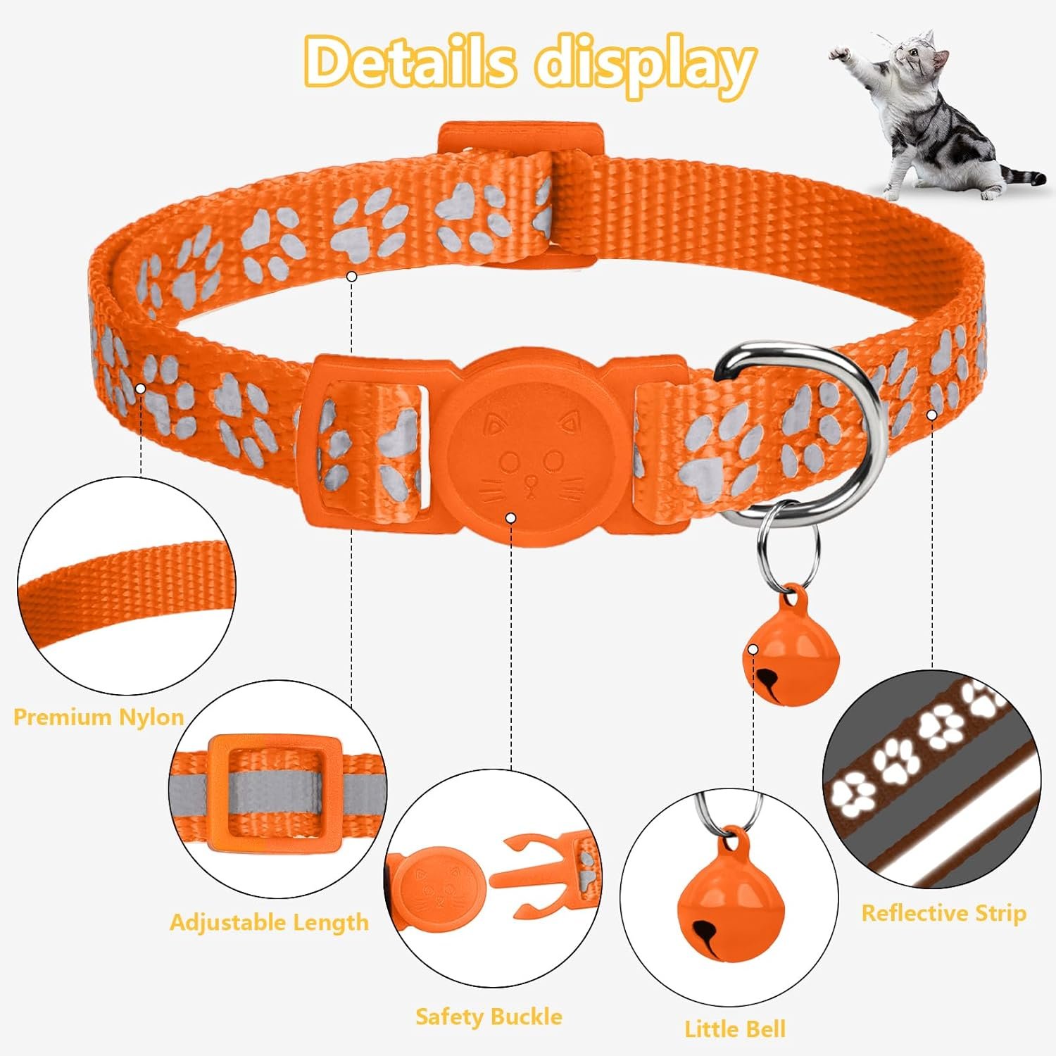 REFLECTIVE PAW PRINT AND STRIP: Highly reflective design works well to allow you to spot your cat in the dark of night with only a flashlight