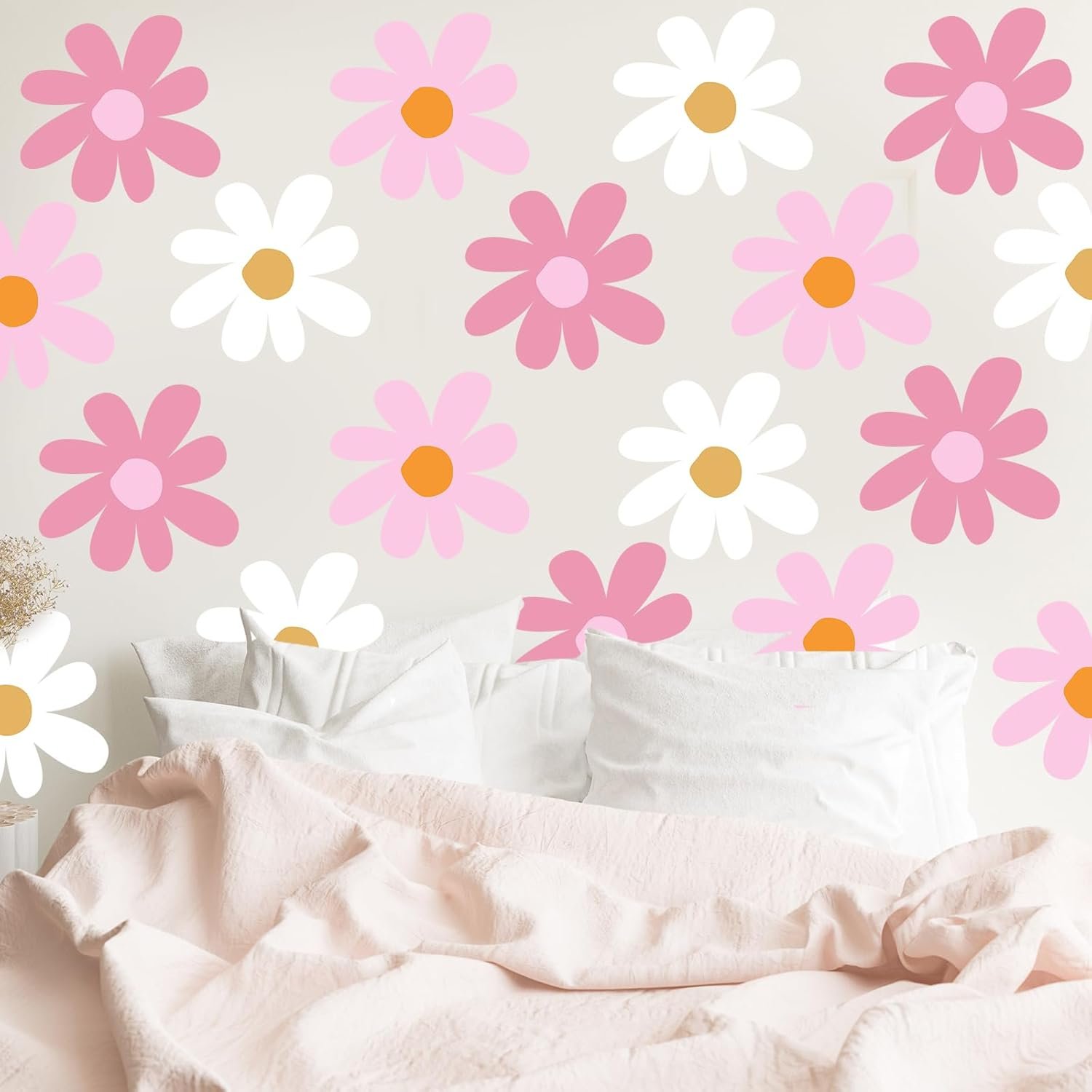 Flower Wall Sticker Cute Daisy Sticker Pink White Flower Decal Peel and Stick Floral Wallpaper for Nursery Bedroom Home Decor
