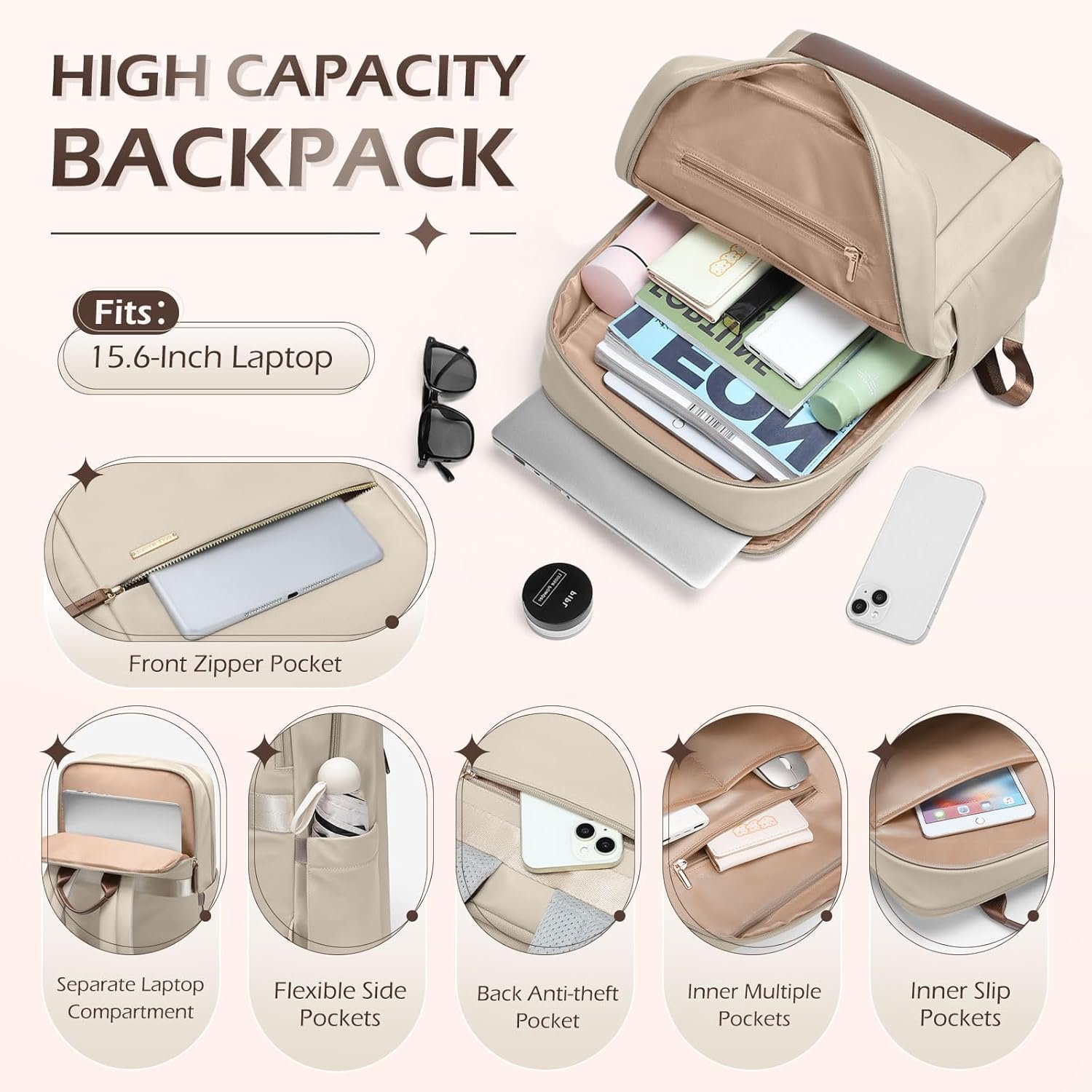 LARGE CAPACITY: Wide Open Teacher Nurse Backpack for women Made of high quality water resistant nylon fabric, metal double-way zipper pulls ensure extreme durability. Work backpack has a separate laptop compartment that it could hold 15.6 inch computer and protect laptop from moving; Casual daypack main compartment has enough storage space to hold your books or daily necessities
