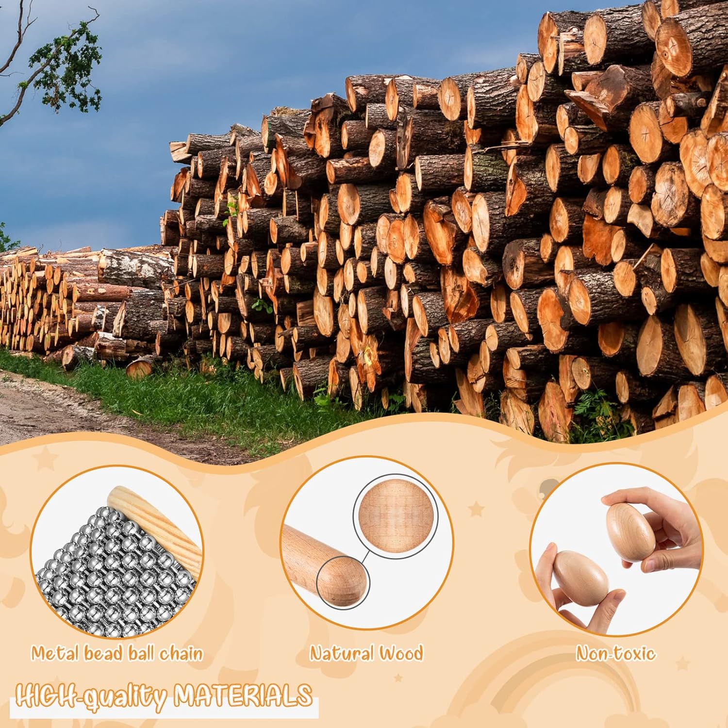 Nuanchu 5 Pcs Wooden Hand Percussion Instrument Set Mini Wooden Cabasa with Stainless Steel Breads Musical Latin Instrument Classical Wood Percussion Claves Rhythm Sticks Egg Shakers for Adult