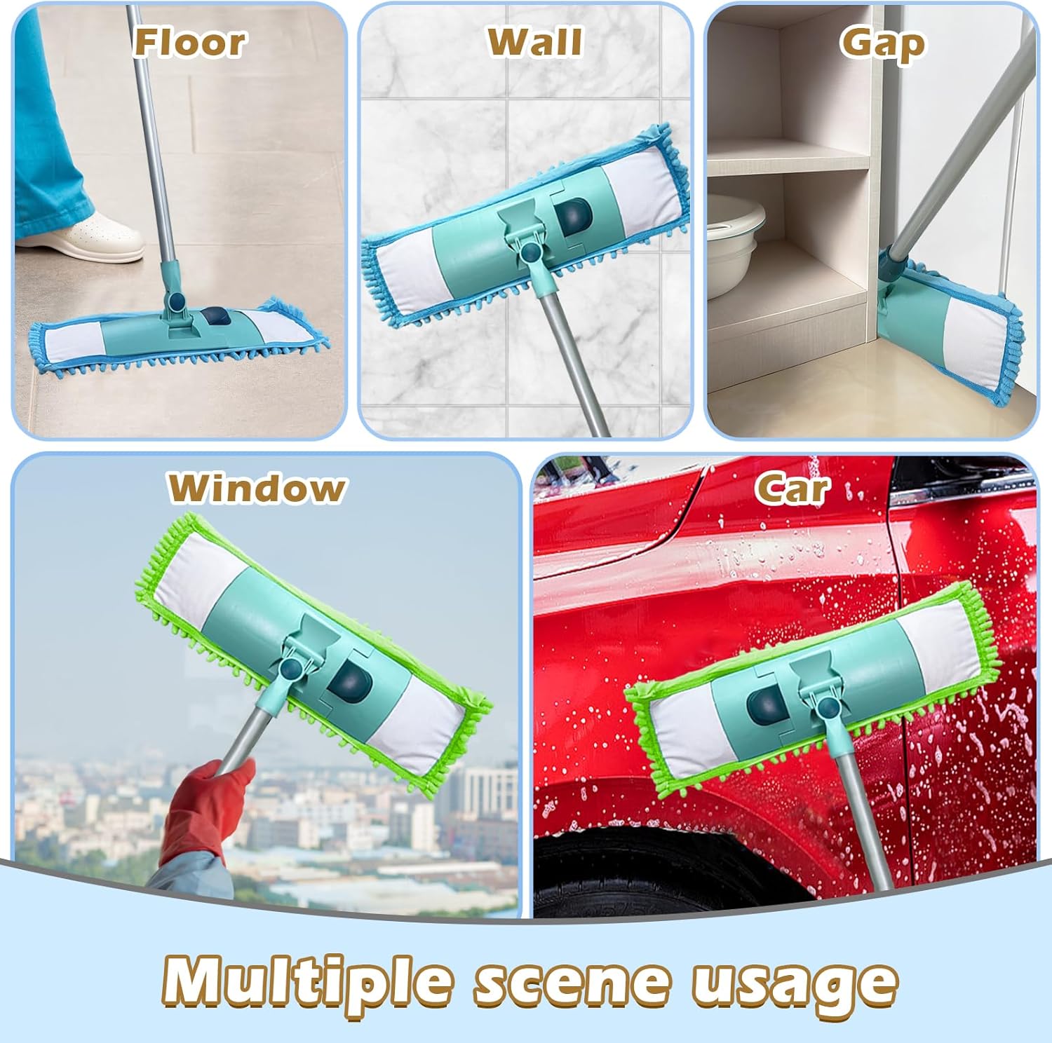 Easy to Remove and Wash: The Microfiber Sweeping Pad installs in three seconds—simply press the mop clips and slide the pad onto both sides. Machine or hand washable, fibers regain shape after washing for repeated use, perfectly replacing disposable mop supplies
